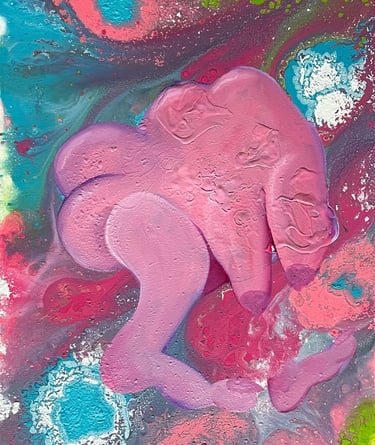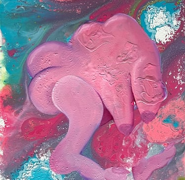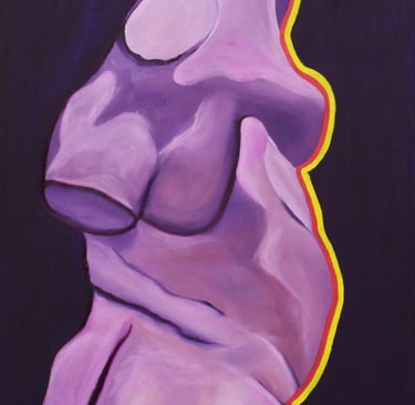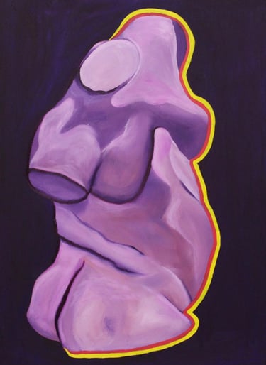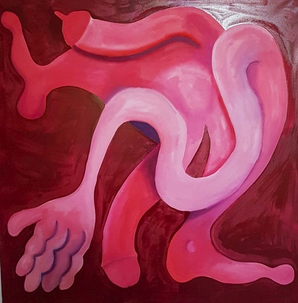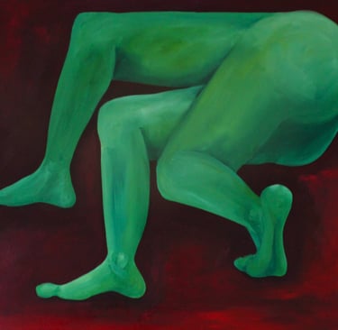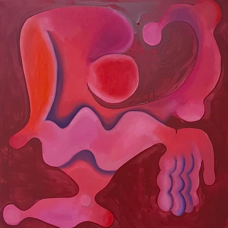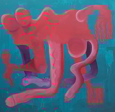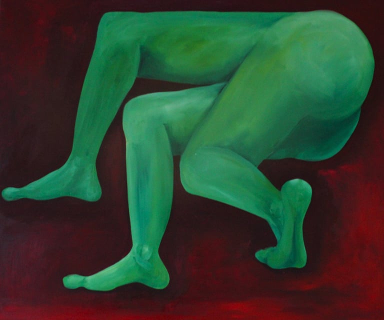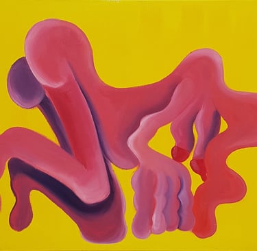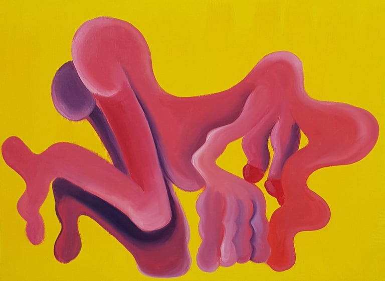 A reoccuring theme in Yann her paintings is the human body and its experiences. Questions about gender, femininity and the body are all subtly layed out on the canvas, as she contorts the human figures displayed. Rearranging the limbs, blowing them out of proportion, playing with the elements of the body, these are all manners to adress the insecurities and uncertainties felt by her or others around her, often in an exaggerated or humorous way.